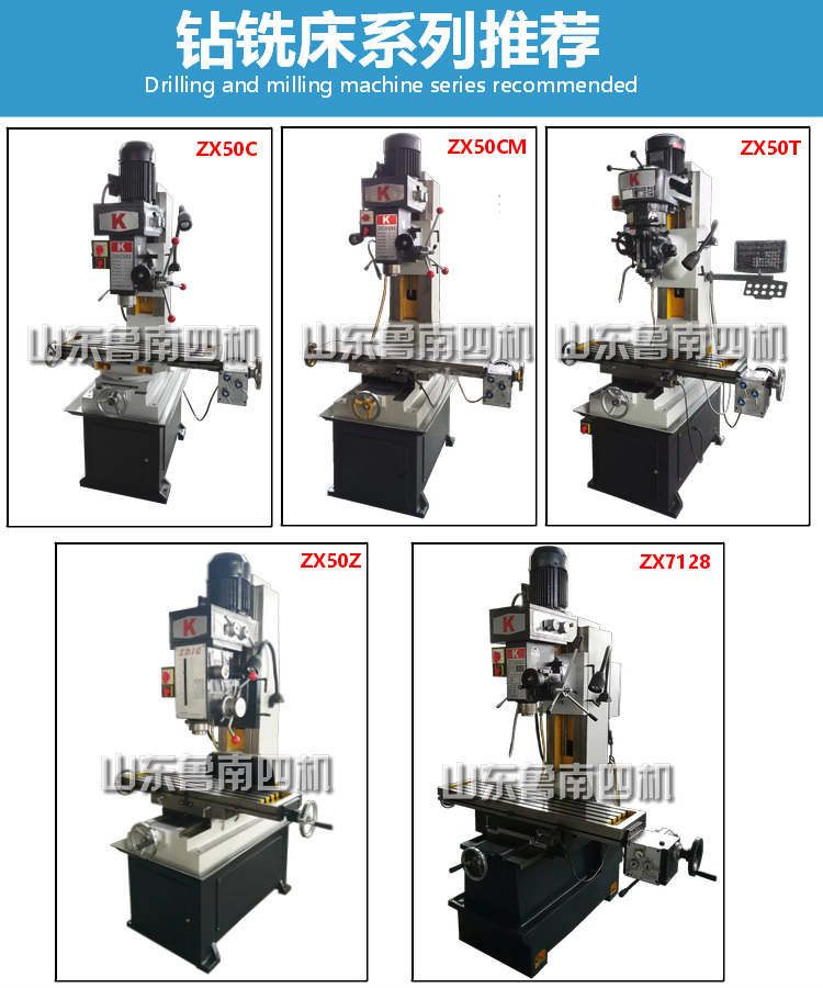 ZX50C/ZX50CM多功能鉆銑床綜合銑床、鉆床主要特點設計,具有銑、鉆、鏜、磨、攻絲等多種切削功能,主軸箱為齒輪傳動,齒輪采用磨齒經高頻淬火處理,噪音低,經久耐用。可垂直平面內左右回轉90°,工作臺面積可在水平面內垂直縱橫移動,又可左右回轉45°,工作臺配有機械進給器,可實現工作臺縱向自動進給,提高加工精度和表面光潔度。主軸配有微動進給機構,可進行平面、凹槽、螺旋面、斜面、花鍵、齒輪等的加工,結構簡單,操作靈活,廣泛用于單件或是成批的機械制造。